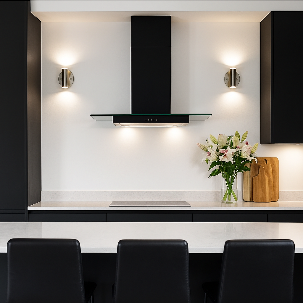 Built from 18/10 grade stainless steel with a durable matt black finish, this cooker hood features fully welded and polished joints for a seamless, high-quality appearance. The 8mm flat glass canopy enhances clean lines and symmetry within your kitchen space.